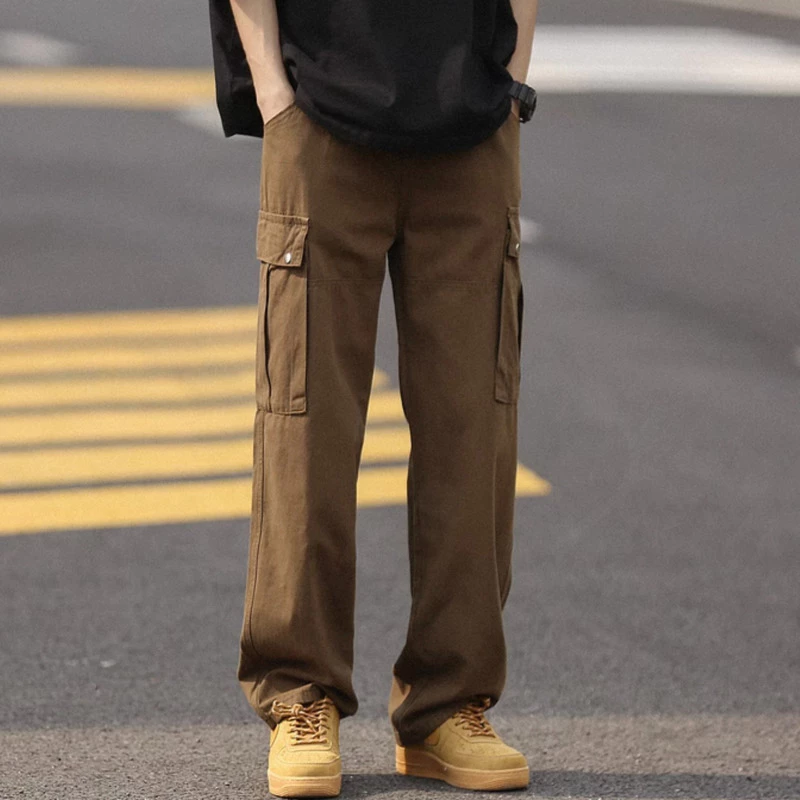 M-5XL Cotton Vintage Casual Plus Size Cargo Pants Men White Baggy Loose Overalls Casual Straight Cut Working Tactical Kerja Pants Men Seluar Kerja Kargo Cargo Lelaki Tahan Lasak